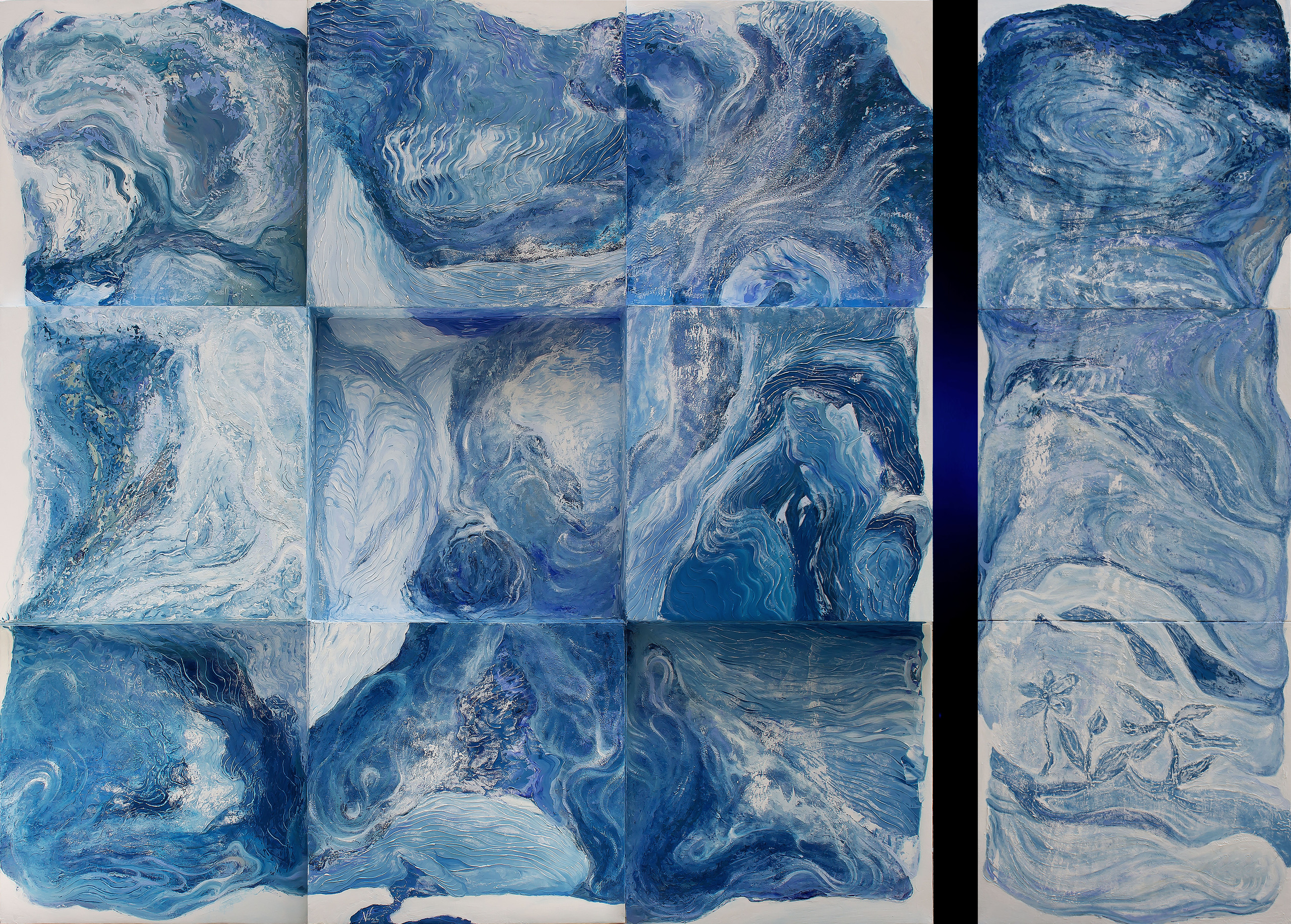 Cứ thế mọi thứ như 1 vòng tuần hoàn ( bức tranh bên phải ), con người nỗ lực để được sống như những đóa hoa, rồi cũng trở về với hư vô, rồi lại thành hình, thành “ hoa” và tiếp tục vòng tròn nhân sinh.