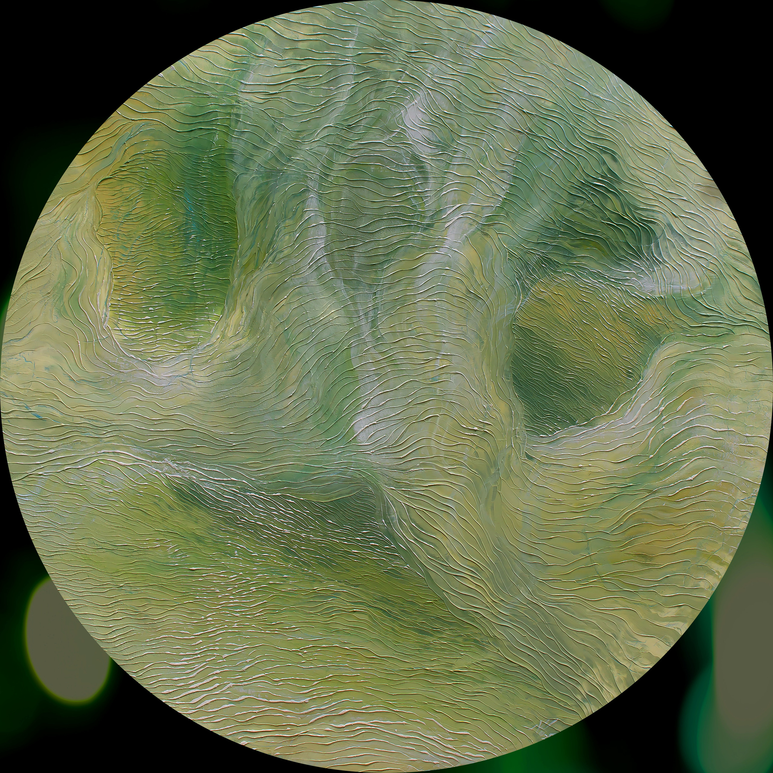 Bức tranh sử dụng hình ảnh trùng điệp của lớp lang sóng nước ẩn hiện Chuyển pháp luân thủ ấn ( bánh xe luân hồi, dòng năng lượng liên tục, chuyển động không ngừng) gợi nhắc về 1 vòng tuần hoàn, tiếp nối, và tái sinh của 1 kiếp người.