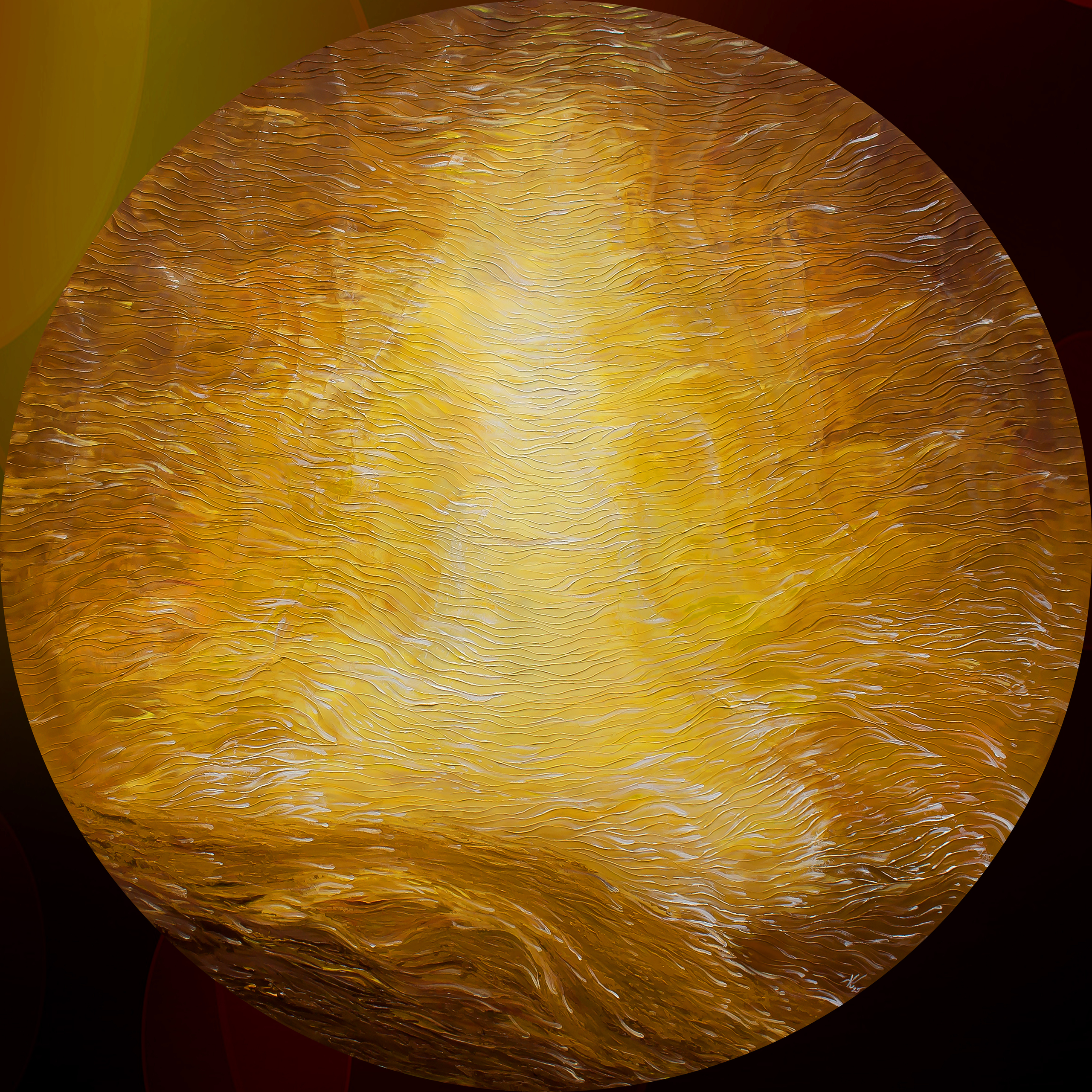 Lớp lang sóng nước là tính biến chuyển phải có của cuộc đời cùng những nguồn sáng vừa như chảy trôi vừa như nhảy múa là kết quả của việc tu dưỡng thân – tâm – trí, như 1 từ trường. Hào quang vàng nhạt tỏa ra mang ý nghĩa là 1 người đang phát triển nhận thức tâm linh và năng lực tâm linh của mình, trong khi vàng đậm hành Thổ bao bọc ở ngoài là môi trường nuôi dưỡng và phát triển vạn vật.